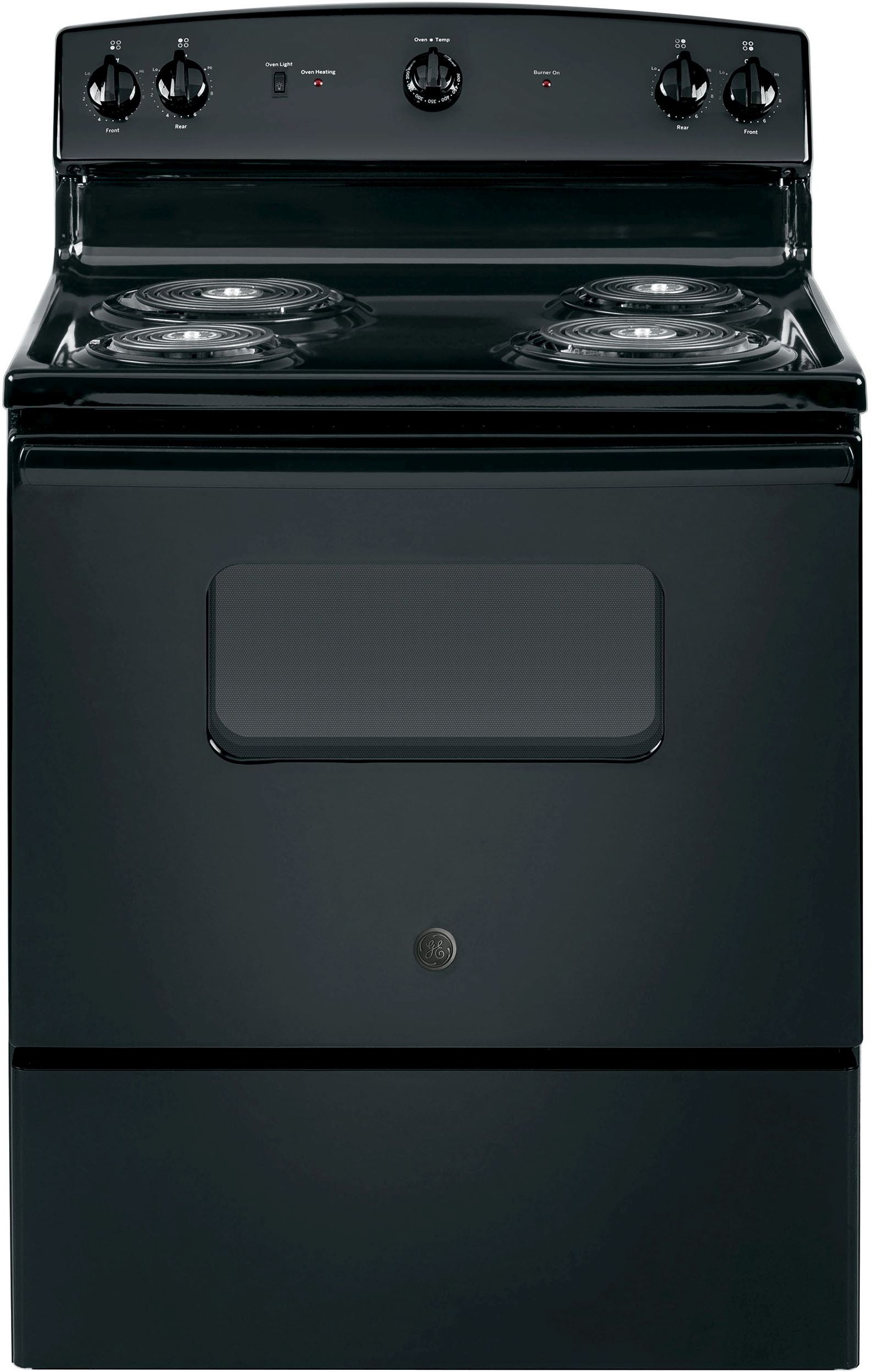 GE® 30" Black Free Standing Electric Range with 5.0 Cu. Ft. total capacity, sensi-temperature technology, and dual element bakeRead More