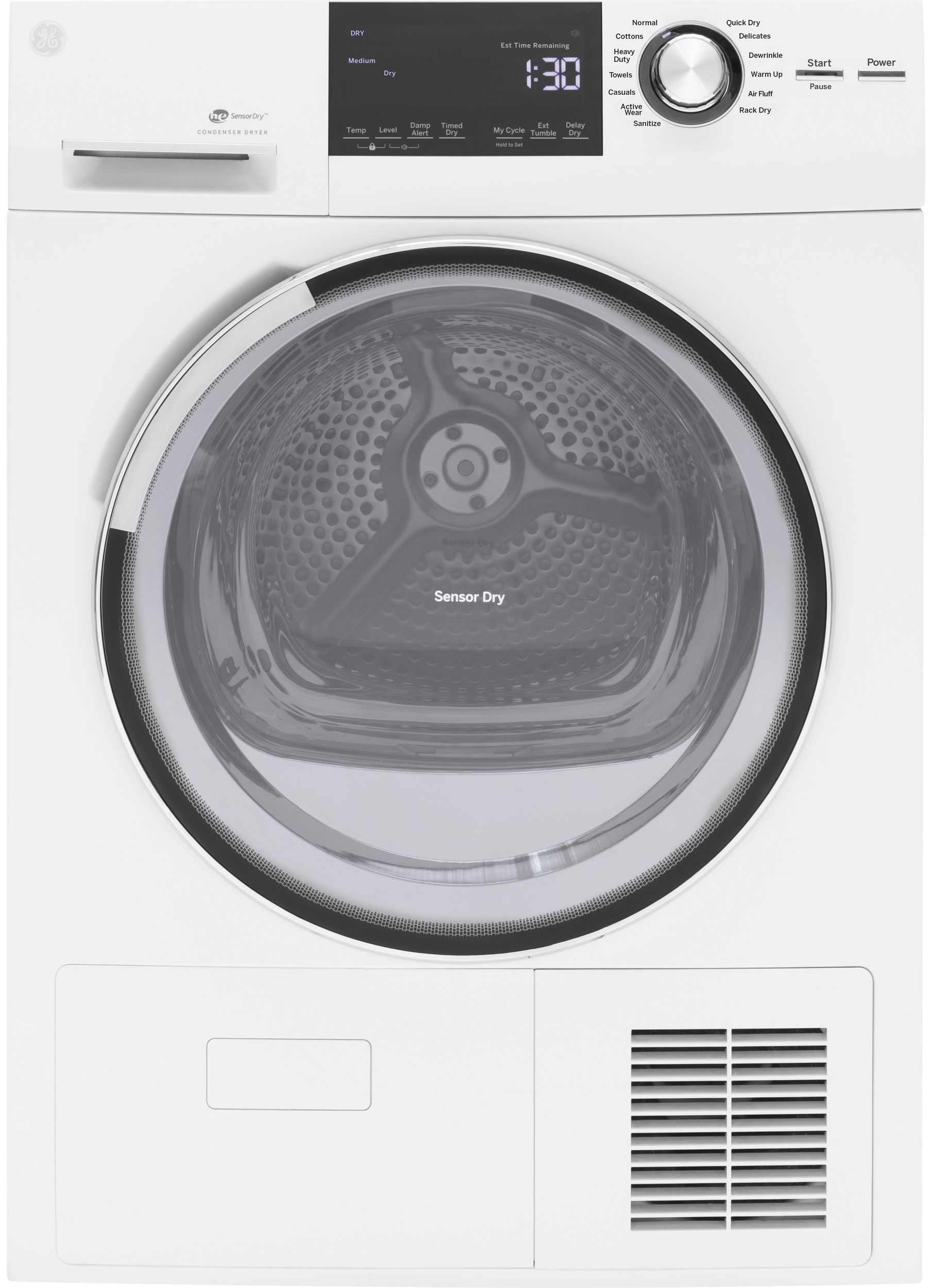 GE® Front Load Electric Dryer-White with 4 Cu. Ft. total capacity, vent-less and stainless steel drumRead More