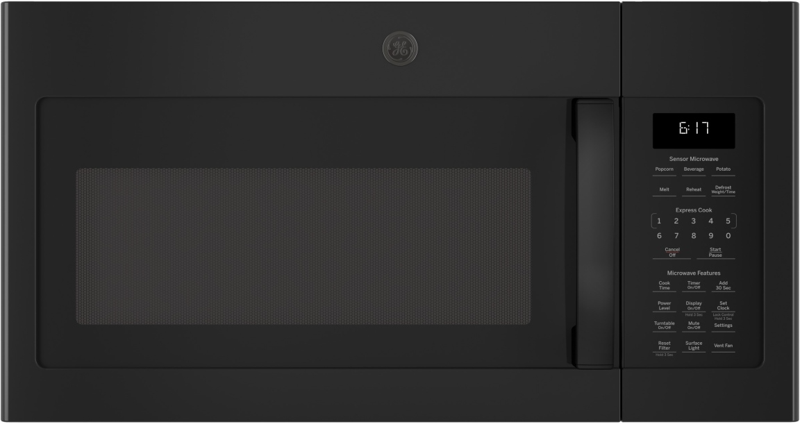 GE® Series Black Over-The-Range Microwave Oven with 1.7 cu. ft. capacity, 300 CFM venting system and upfront charcoal filter indicator lightRead More